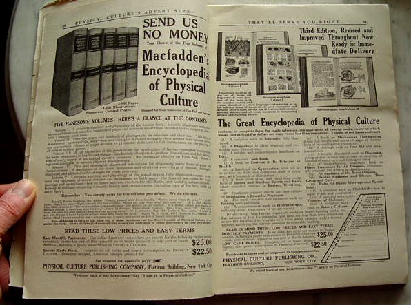A two-page advertisement in Physical Culture Magazine for one of the very early editions