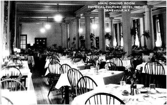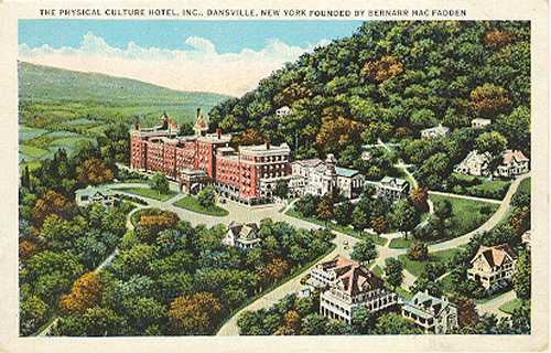 Millions In 1928 Macfadden purchased Castle Heights Military Academy in Lebanon, Tennesee. He wanted the school to be a model of his philososphy of education where character development and physical culture were just as important as academics. Macfadden took an active interest in CHMA, visiting the school on numerous occasions, and the Macfadden Foundation oversaw the endowment of the school. The school was a success and provided a great education for many young men who even today are loyal alumni of their alma mater. Castle Heights had a rich history. In 1974 it was purchased from the Macfadden Foundation, but, sadly, it had to close twelve years later as a result of severely declining enrollment during the post-Vietnam War era. Castle Heights Main Building and Macfadden Auditorium In 1929 he bought an 18 acre estate in Englewood, New Jersey. On the grounds was a small lake, a swimming pool, tennis court, miniature golf course, basketball and archery, swings, and various other athletic equipment. The main photo below was taken from the waterfalls. The inserts show the swimming pool and portions of the dining room and living room. The house had twenty-eight rooms. There was a four car garage. Today the land adjoins Flat Rock Brook Park. ![]() Unfortunately, his marriage to Mary was falling apart. They had many quarrels and fights. As a husband and father, he tended to be very authoritarian and inflexible. In addition, his businesses kept him away from home more and more of the time. He also had another major weakness. Like Samson, the strongman from the Bible, he was a verile man who seemed unable to control his passion for attractive young women. A common saying among employees at Macfadden Publications was "it is alway sex o'clock around here!" Bernarr and Mary were legally separated in 1932 and divorced in 1946. In 1929 he acquired the Jackson Sanitarium in Dansville, New York. Dr. James Caleb Jackson (1811 - 1895) had been a 19th century nutritionist and practitioner of hydrotherapy. Jackson also developed the first cold cereal which he called "Granula." Jackson is recognized today as an important person in the history of alternative health in America. Macfadden refurbished the Jackson Sanitarium and converted it into a resort hotel, renaming it the Physical Culture Hotel. The PC Hotel offered a number of health therapies but also emphasized recreation and social activities such as swimming, sunbathing, tennis, and dancing. He owned several resort hotels, but his favorite by far was the Physical Culture Hotel in Dansville. The PC was located on a hillside overlooking the small village of Dansville in the beautiful Genesee Valley of central New York state. It offered top quality accomodations in every way and was "the place" for celebrities and the wealthy to visit to relax and "get away from it all." In its day, it was a wonderful, lively place. The residents of Dansville who are old enough to remember the PC tell stories of wonderful times when they went to dances "under the stars" on the rooftop of the main building. CLICK HERE for a look at a brochure for the hotel. From 1971 until the present the PC has been empty and abandoned. There have been a couple fairly serious efforts to raise funds to renuvate the building, but these have never come to fruition.